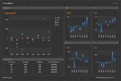 StrongWeak (SW.exe). StrongWeak is a standalone app that provides an easy-to-read interface showing the strongest and weakest major currency movers.