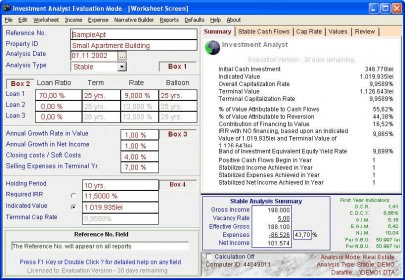 Investment Analyst streamlines income-producing real estate evaluation using advanced mathematical modeling and industry-standard valuation methods. Ideal for commercial appraisers, brokers, and investors, it handles everything from financing assumptions to income growth, property appreciation, and long-range holding periods. Designed for fast, accurate insights, it supports modern workflows such as PDF export, RTF output, Excel integration, and seamless report merging.