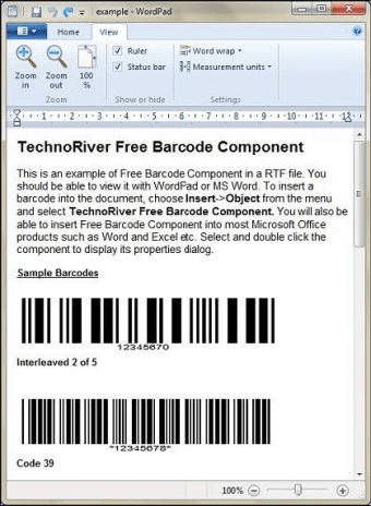 SmartCodeComponent is a free barcode software that allows you to effortlessly integrate Code39 and I2of5 barcodes into your Windows documents, including WordPad, Word, and Excel. This free edition is perfect for personal use and non-profit or educational organizations.