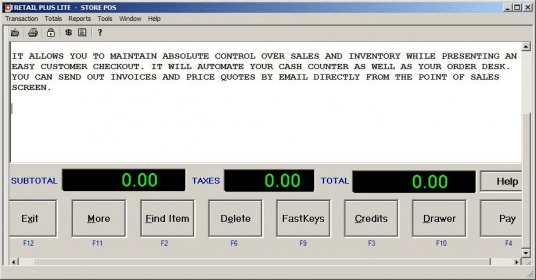 Retail Plus Lite (PLUSLITE.EXE). It allows you to maintain absolute control over sales and inventory while presenting an easy customer checkout.