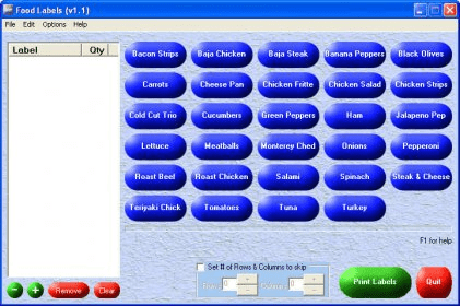 Food Labels (FoodLabels.exe). Food Labels is a program designed to help with the process of labeling food products once they have been prepared.