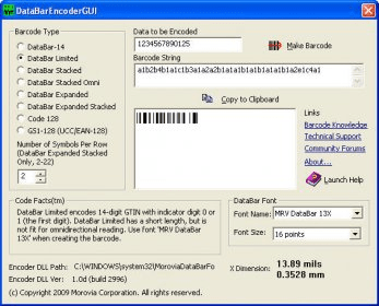 Morovia DataBar Fontware (DataBarEncoderGUI.exe). Morovia DataBar Fontware is a font-based solution to print GS1 DataBar symbols.