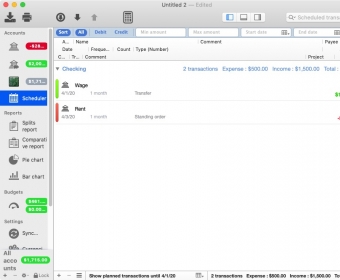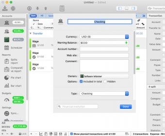 The interface is structured into three clean panes for quick navigation, detailed viewing, and efficient editing. While iCompta is rich in capabilities, its built-in sample document, welcome menu, and help guide make it easier to learn. The app supports multiple accounts, currencies, reports, and bank-import formats—perfect for users who want deeper insight into their financial health.