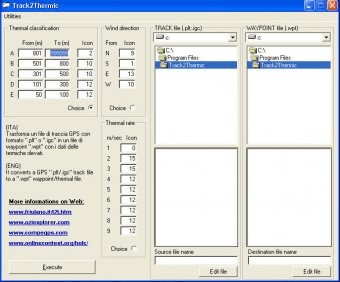 Track2Thermic (Track2Thermic.exe). This software searches the track files downloaded from the GPS for ascending areas (thermals).