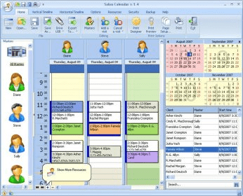 With secure password-protected profiles, every specialist can view team availability, manage bookings, and organize tasks efficiently. Its flexible layout options, auto-backup, and print designer make it a powerful team calendar management tool and multi-user booking system.