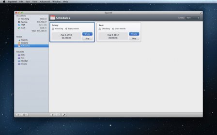 Squirrel is a simple finance application designed for users who need a clean and effective solution to control spending, organize bills, and stay financially confident. Import, export, and edit invoices or account data while automatically or manually updating balances.