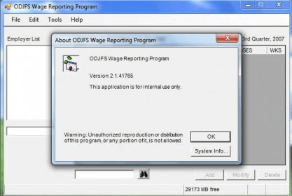 ODJFS Wage Reporting Program (ODJFS.exe). ODJFS Wage Reporting Program is a free program that allows you to generate an employer list box...