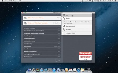WISO Steuer: 2013 is the best-selling tax software for Mac users! Prepare your 2012 tax return quickly and accurately with this powerful, user-friendly tool. Take advantage of the special discount in the App Store and save 20% compared to the regular price! It’s the latest winner of the double test award (Macwelt 03/2013 and MacLife 02/2013), available at the best price right now.