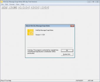 WinCity Massage SOAP Notes is an innovative software designed specifically for massage therapists, enabling them to create detailed and accurate SOAP notes quickly and efficiently. Whether you're managing a busy practice or looking to simplify your documentation process, WinCity Massage SOAP Notes offers an intuitive solution for all your charting needs. Compatible with Windows XP, Vista, and 7, it is the ideal tool for professionals who want to save time and improve their record-keeping.