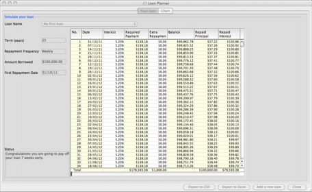 • Simulate and compare multiple loans simultaneously • Currency independent support for global use • Visual graphs of repayments and balances over time • Model interest rate changes for better planning • Add extra repayments to shorten loan duration and reduce costs