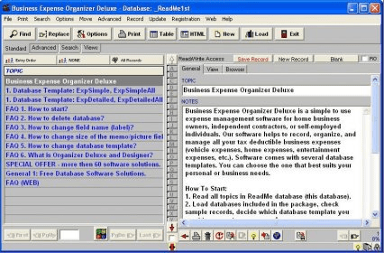 Business Expense Organizer Deluxe (DELUXE.EXE). Business Expense Organizer Deluxe is a simple to use expense management software for home business owners...