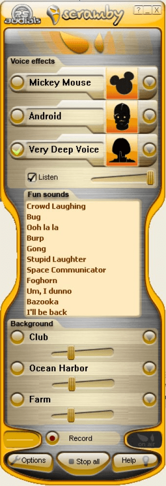 Scramby (Scramby.exe). Scramby 2.0.60.0 scrambles your microphone voice, making you sound like different characters.