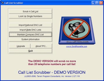 Call List Scrubber (scrubber.exe). Call List Scrubber is a simple to use tool designed to help anyone comply with Federal and State Do Not Call Laws.