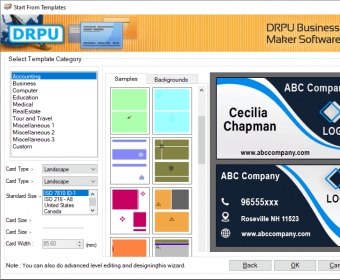 This user-friendly program offers three convenient options for designing your business cards: start with a template, use the card creation wizard, or create your card from scratch with a blank format. You can fully customize the design by selecting the card type, size, dimensions, background, color, and more. Add your personal details, preview the final design, and print high-quality business cards with ease.