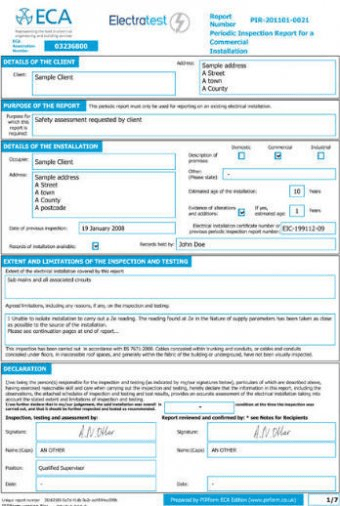 PIRform (Pirform.exe). - Periodic Inspection Report for use on any type of premises - Electrical Installation Certificate for use on any type of premises...