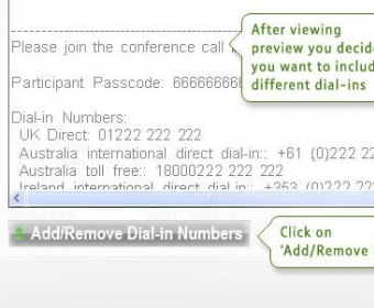 MeetMe Outlook Add-In. Click on the “Join Conference” button to open a screen that allows you to choose a number on which to be called back.