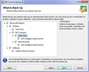 ABF Outlook Backup (abfOutlookBackup.exe). ABF Outlook Backup allows you to backup Microsoft Outlook mail client.