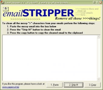 emailSTRIPPER is a free Windows app that automatically cleans forwarded content—just copy your text, paste it into the interface, tap “Strip it,” and get a polished message in seconds. It’s fast, intuitive, and perfect for users looking for the best email cleanup tool or a quick way to remove forwarding symbols without manual editing.