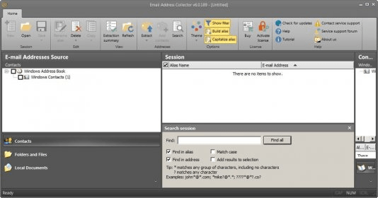 Email Address Collector is a powerful tool designed to extract email addresses from applications and system folders, including Outlook, Outlook Express, Thunderbird, Windows Address Book, Contacts, and more. It also scans web documents, PDF and DOC files, MSN Messenger logs, and additional formats. Advanced filters let you target specific domain names, use wildcard searches, and refine results by content—ideal for users who need efficient list cleanup or professional email list management.