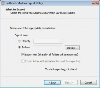 EarthLink TotalAccess (TaskPanl.exe). The EarthLink/TotalAccess Mailbox Export...