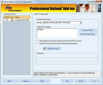 Sperry Software - Contacts Sort Order. Sperry Software - Contacts Sort Order is an add-in for Microsoft Outlook that fixes the sort order of existing contacts.