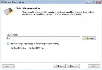 Outlook Import Wizard (oimport32.exe). Outlook Import Wizard is an easy-to-use utility which allows you to copy EML and MSG files to Outlook.