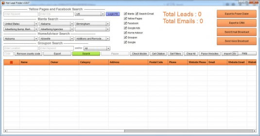Hot Lead Finder helps you instantly collect high-quality business leads from Facebook, Google, Manta, Yellowpages, and Home Advisor. Designed for efficient outreach, it captures company names, addresses, emails, phone numbers, website links, and more.