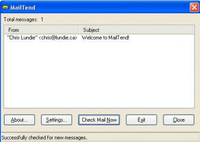 MailTend (mailtend.exe). Features: Choose how often you want to check for new mail. - Quickly preview sender and subject fields.