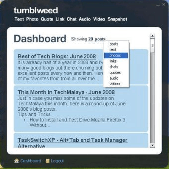 Experience Tumblr like never before with Tumblweed, the ultimate desktop client designed to bring all the fun and creativity of Tumblr to your desktop. Whether you're browsing your favorite posts or creating new ones, Tumblweed offers a seamless experience with full support for most Tumblr features. Easily upload photos directly from your webcam, clipboard, or by simply dragging and dropping them. Say goodbye to the limitations of web-based Tumblr and enjoy enhanced functionality with Tumblweed.
