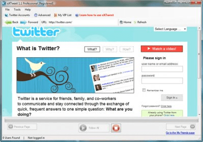 eXTweet (eXTweetTrial.exe). eXTweet has a build it autofollow and unfollow feature, so you can get hundreds, if not thousands of new followers everyday!
