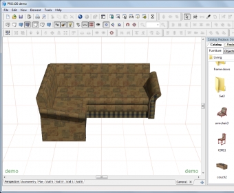 The interface is clean and familiar: a central workspace surrounded by tool panels and extensive object libraries. Switch seamlessly between projection modes—perspective, axonometry, plan view, or wall views—and adjust how your models appear on screen. You can view objects as simple wireframes or enhance realism with textures and reflections. Layer support keeps complex projects organized, helping you visualize professional results for remodeling or renovation projects.