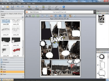Choose from templates for calendars, greeting cards, disc covers, scrapbooks and more. Personalize each one or keep the original design. When finished, print your collage, e-mail it, set it as wallpaper, or even print on supported objects like mugs or T-shirts. The Pro version also lets you add extra pages for multi-page projects.