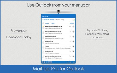 MailTab Pro for Outlook is a powerful, user-friendly app that offers seamless access to your Microsoft Outlook and Hotmail accounts directly from your Mac’s menu bar. Designed for productivity, it allows for quick email management with no need to log out or switch between multiple accounts. Whether you're looking for instant notifications, customizable features, or a distraction-free experience, MailTab Pro has everything you need to stay on top of your inbox.