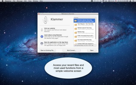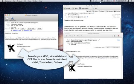 Easily open and convert Microsoft Outlook emails, attachments, calendar events, and tasks to Mac-friendly formats with Klammer. Access and read MSG, OFT, and Winmail.dat files on your Mac, while viewing rich-formatted messages complete with hyperlinks, images, and tables.
