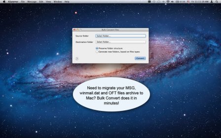 Need to bulk convert files? Klammer’s Bulk Convert feature lets you convert multiple Outlook files at once to Mac-compatible formats. Whether you’re handling emails, contacts, or calendar events, Klammer takes care of the rest, transforming your Outlook data into a usable format for MacOS. And with Mountain Lion integration, you can stay on top of your conversions with real-time notifications!