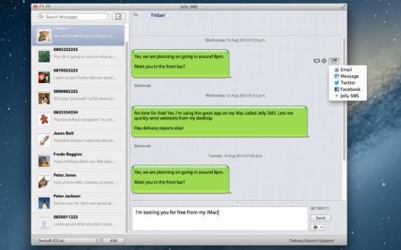 Jelly SMS has been redesigned to offer the ultimate messaging experience on Mac. The new, user-friendly interface supports Retina displays, includes message history and delivery reports, and features enhanced customization options. Enjoy easy access to your contacts and a smooth texting experience with iCloud synchronization across your devices. Whether you need to send multiple texts or share messages via social media, Jelly SMS has you covered.