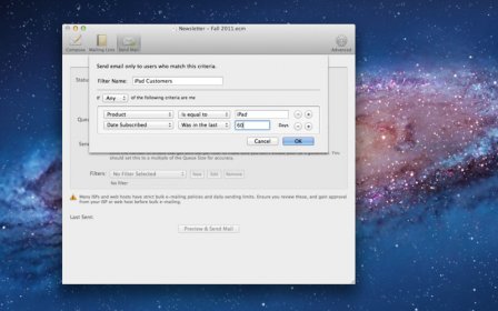 Perfect for customer retention, creator marketing, and small business outreach, MailShoot keeps your audience engaged and encourages repeat website visits. It even works seamlessly with iWeb and MobileMe-hosted websites—no technical skills required.