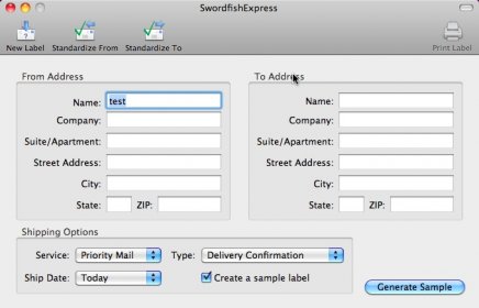 SwordfishExpress is a free USPS label generator designed to help you quickly create and print mailing labels without postage, fully compliant with United States Postal Service regulations. Perfect for occasional shippers and anyone who needs convenient label printing.