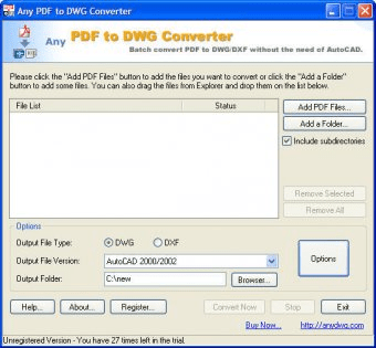 With PDF to DWG Converter, you can seamlessly convert PDF files into the widely used .DWG and .DXF formats for AutoCAD. This tool allows you to process multiple PDF files simultaneously, making it an essential resource for AutoCAD users needing to extract graphics from several PDFs. The software works on all Windows versions, and its lightweight design ensures fast and smooth conversions depending on your system and file size.