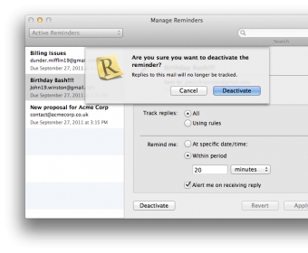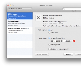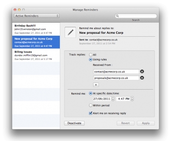 RSVP is an intuitive email management app designed to help you monitor important email correspondence and track unanswered messages. By setting up personalized reminders, you can ensure you never miss a follow-up, no matter the time that has passed since you sent the email. With customizable settings, the app gives you full control over the reminder schedule, type of message, and recipients, all through a seamless and user-friendly interface.