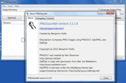 PNGGauntlet (PNGGauntlet.exe) free download, latest version 3.1.2, PNGGauntlet is a .NET program that uses Ken Silverman's PNGOUT...