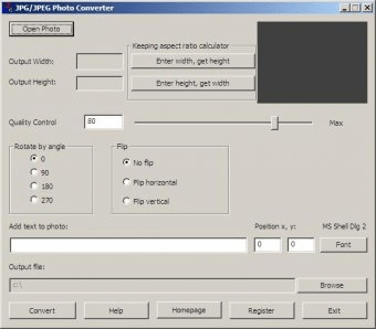 In addition to basic conversion, JPG/JPEG Photo Converter lets you add text watermarks to your images. You can customize the font, size, and placement of the watermark by specifying coordinates. However, the tool lacks a real-time preview, which means adjustments may require some trial and error. The software also includes rotation and flipping features, but again, the absence of a preview can make fine-tuning a challenge.