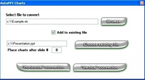 AutoPPT Charts (AutoPPTCharts.exe) free download, latest version 2.0, Create PowerPoint charts presentation automatically from an Excel file.