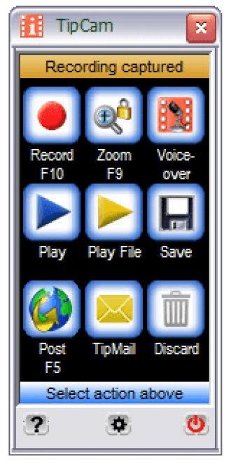 TipCam (tipc.exe). Free screencast recorder for Windows. Record your screen and voice in a flash video (FLV format) and share it at uTIPu.com or via email.