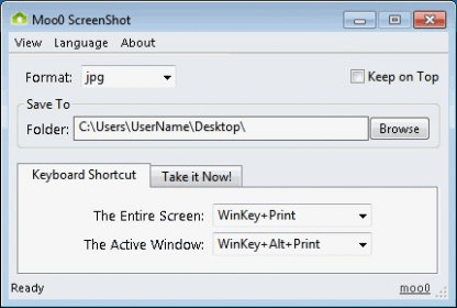 Moo0 ScreenShot (ScreenShot.exe) free download, latest version 1.14, Moo0 Screenshot lets you easily save your screenshot images into the specific folder.