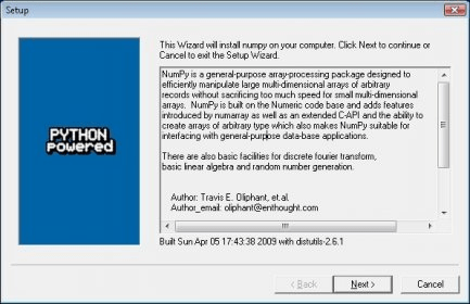 Python numpy (python.exe) free download, latest version 2.6.212, NumPy is an extension for Python that allows complex...
