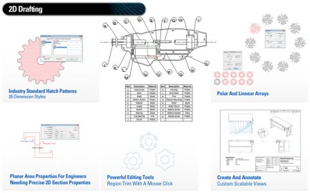 • Extensive toolset for precision 2D drafting and 3D modeling