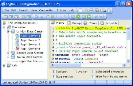 LogMeTT works seamlessly with the popular TeraTerm terminal emulator, helping you organize and instantly launch your TeraTerm Macro scripts. Ideal for IT admins, DevOps engineers, and network operators who frequently connect to recurring servers, LogMeTT saves time and improves efficiency by automating routine authentication tasks. Its hierarchical script tree doubles as a visual network map, offering clear navigation and quick access—an approach perfect for high-volume workflows like remote server automation, network device management, and secure multi-session operations.