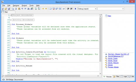 Basic4android is a complete RAD (Rapid Application Development) solution for creating and compiling fully native Android applications with no extra dependencies, add-ons, or runtimes. Designed to streamline development and minimize tedious Java/Eclipse work, it delivers APKs comparable to those built with traditional programming environments—while staying far easier to learn and use.