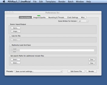POV-Ray Unofficial is a versatile rendering engine tool specifically designed for Mac computers. It offers a user-friendly interface to configure all rendering settings and preferences, making it easy to achieve your desired results. Whether you're a beginner or an advanced user, this tool simplifies the process with a set of helpful features that streamline your workflow.